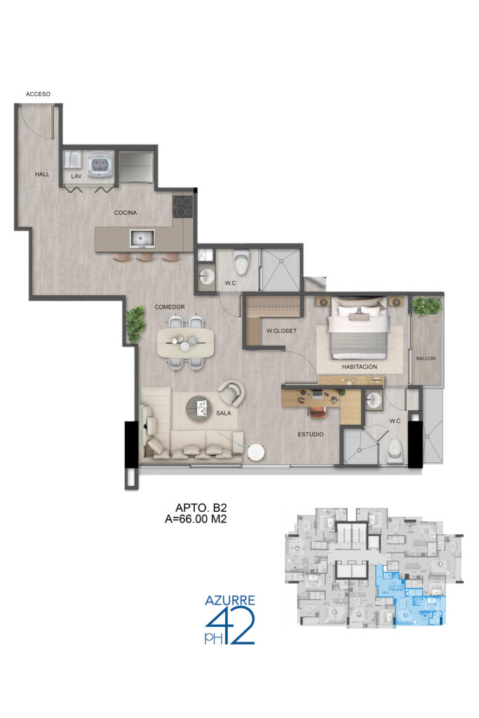 El proyecto responde a las exigencias modernas con apartamentos flexibles de 1 y 2 recámaras + 1 estudio, integrando acabados importados y espacios optimizados para tu estilo de vida.