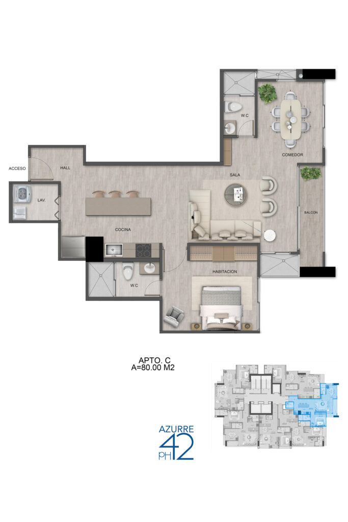 Vivir en PH Azurre 42 significa tener la ciudad a tus pies.