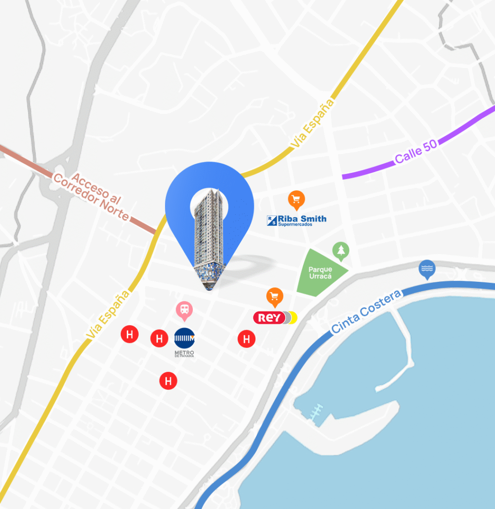 Estratégicamente situado en Bella Vista, disfrutarás de la cercanía a la Cinta Costera, el Parque Urracá y la vibrante vida nocturna de Panamá.